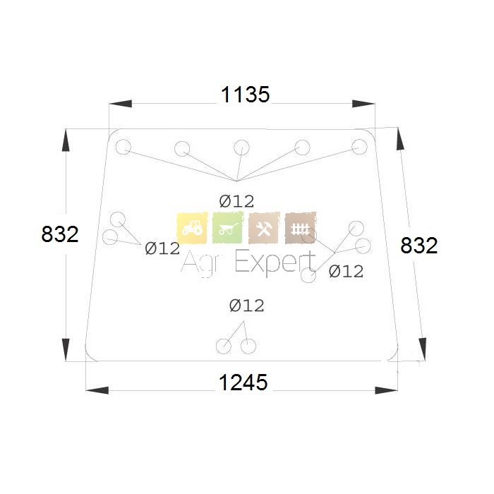 Vitre de cabine pour tracteur John-Deere avec fixation charnière à 5 trous