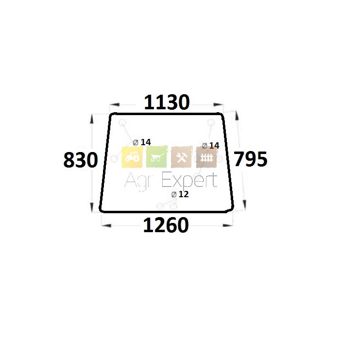 Vitre de cabine pour tracteur John-Deere avec fixation charnière à 2 trous