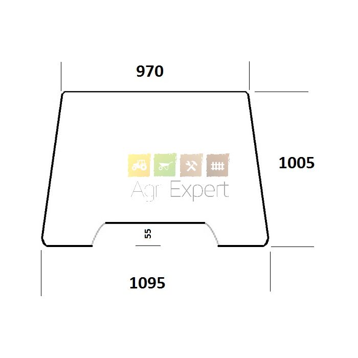 Pare-brise avant pour tractopelle New-Holland 550, 555, 655