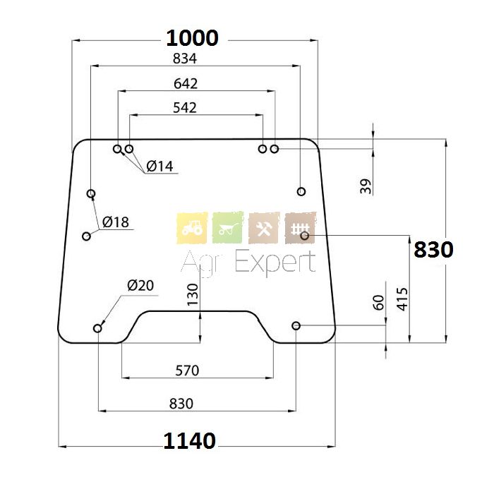 Pare-brise ouvrant teinté tracteur New-Holland TM, Case MXM, Fiatagri M, Ford 8060( 10 trous)