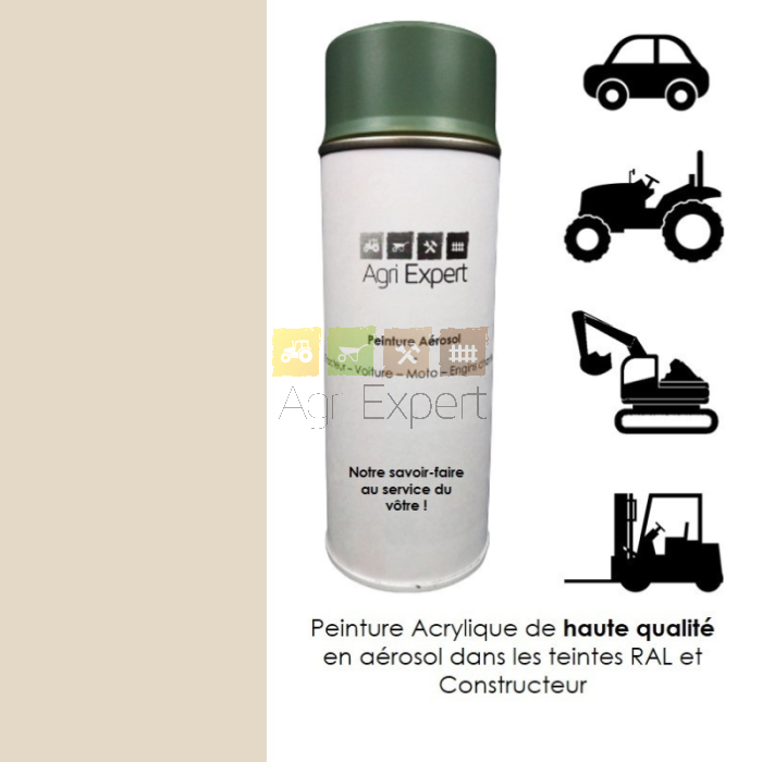 Peinture Aérosol Blanc perlé RAL 1013 bombe de retouche 400 ml, teinte spécifique pour engins et tracteur agricole