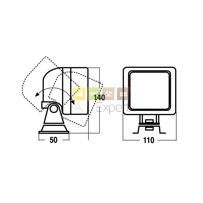 - Dimensions hors tout : l 110 x HT 140 x p. fixation 50 mm