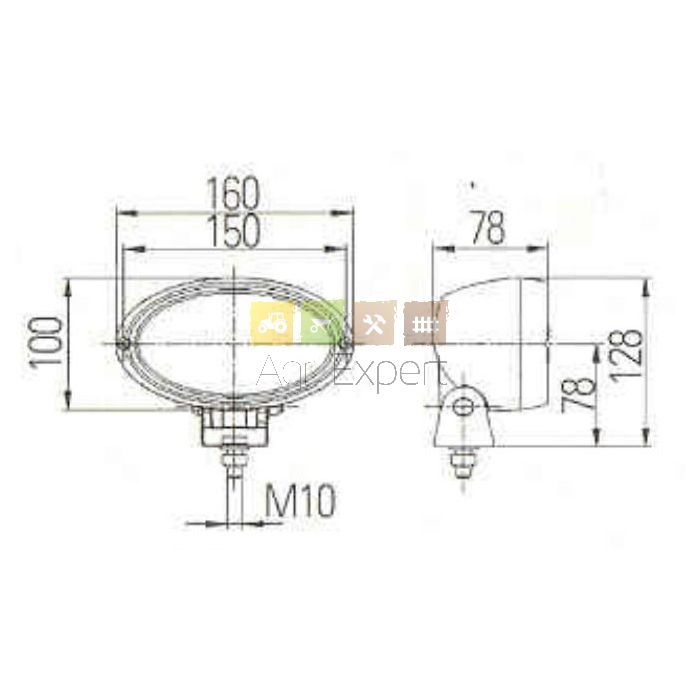 Phare de travail Oval 100 simple Beam Hella montage tracteur Fendt, John-Deere, Massey-Ferguson
