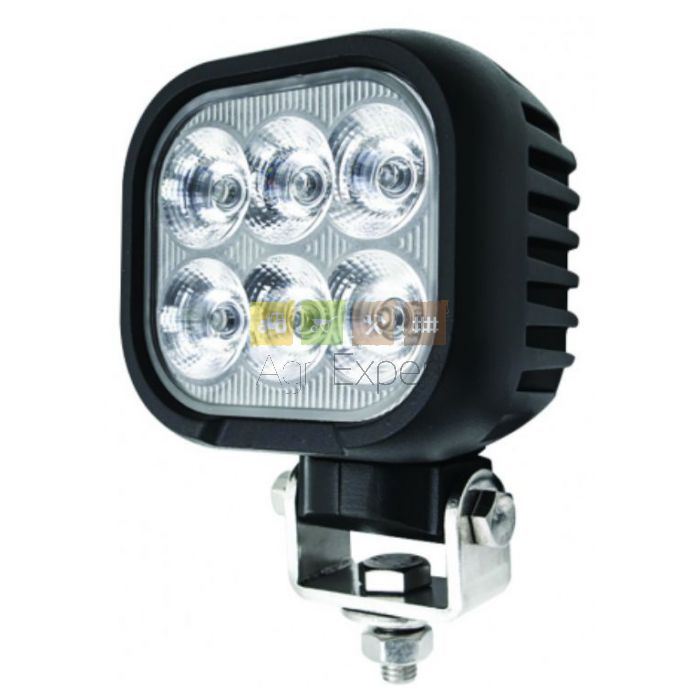Phare de travail rectangulaire 60W avec 6 LED Osram, offrant un éclairage large de 5 400 lumens (théorique) et 5 200 lumens (pratique).