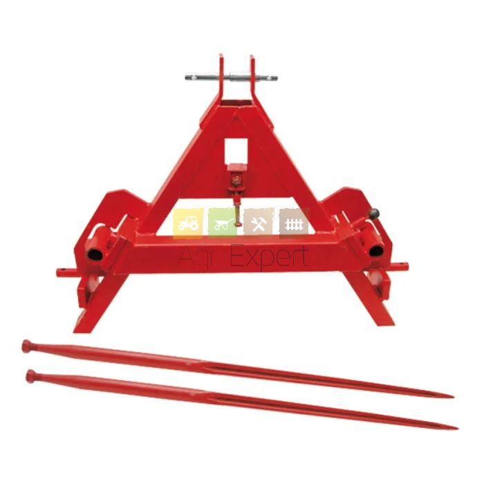 Fourche à balles 2 dents montage sur attelage trois points avant et arrière Cat.1 / Cat.2 et montage pour triangle d'attelage