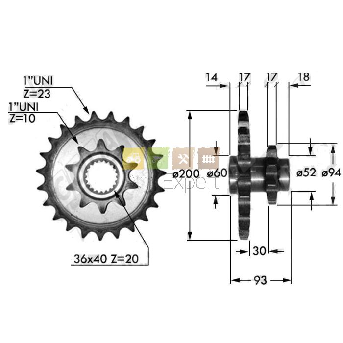 Pignon 10/23 dents - moyeux 20 cannelures 36x40 mm de round Baller Feraboli Expreme 1 - 2, Maschio