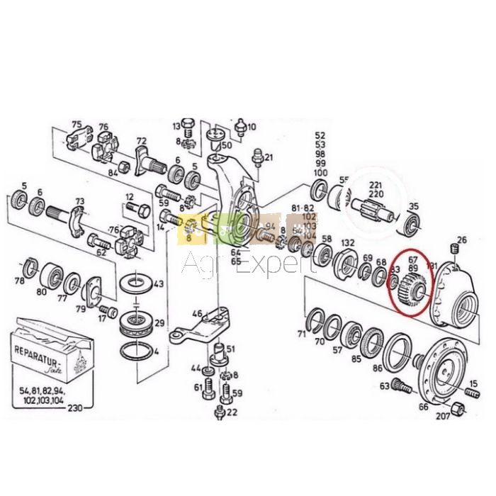 Pignon de réducteur pont avant tracteur Deutz-Fahr DX 85, Dx 90, Dx 110, Dx 120, Intrac 2004