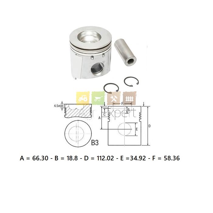 Piston moteur John-Deere 3179D, 3029D, 4039D, 4239D, 6359D, 6329D, John-Deere série 30/40/50/3000 et Renault Cérès