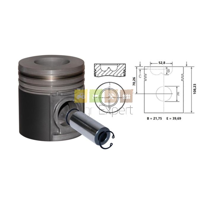 Piston STD 100.00 - hauteur de compression 70.26 mm - Hauteur de cavité 21.75, d 52.80mm - diamètre de l’axe 39,69 mm moteur Perkins 1004.40, 1004.40T, 1004.40TW, 1006.60, 1006.60T, 1006.60TW