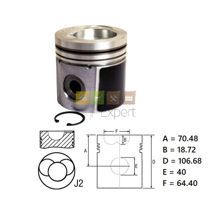 Piston Ø 107.9 x H106.7 mm - 3 segments 3 / 2.5 / 4 mm - chambre Ø64.4 x P18.72 mm - axe Ø40 mm