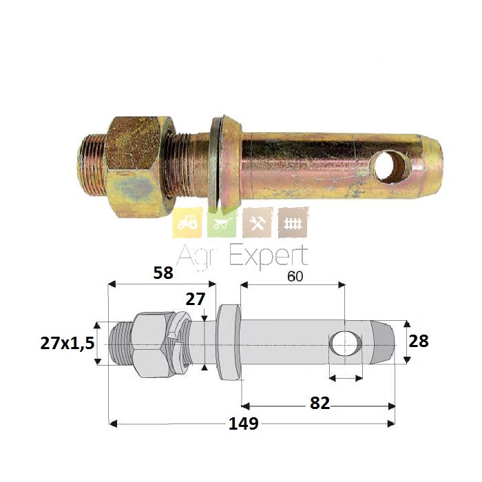 Piton d'attelage Ø28 mm, filetage 27x1.5 mm