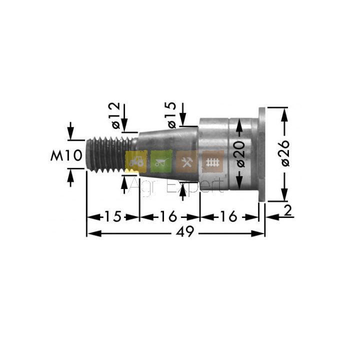Pivot pour faucheuse BCS Type VECCHIO (après 1991) Cône ø12 / ø15 x L16