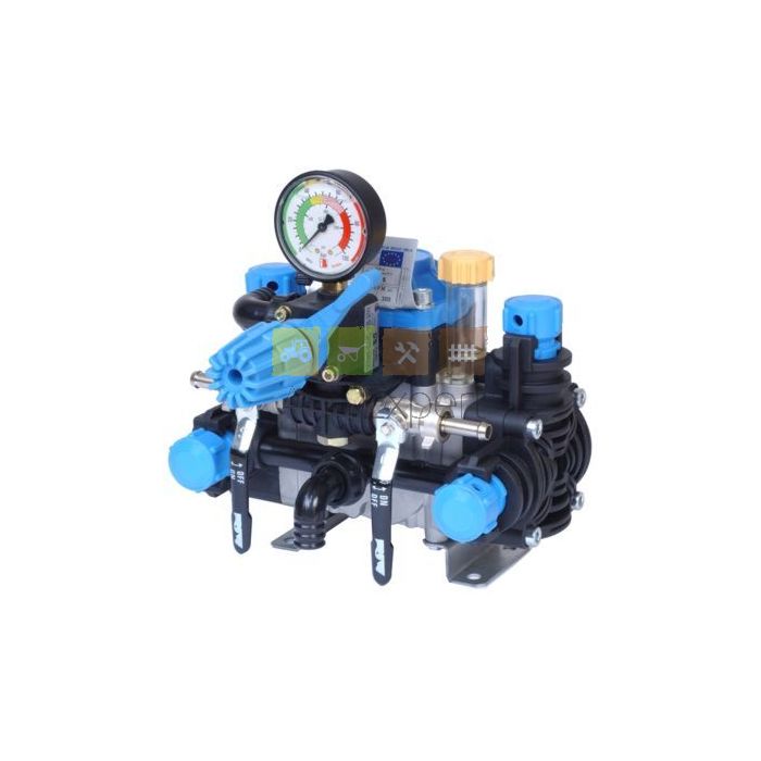 Pompe 2 pistons membranes avec régulateur de pression Poly 2025 VF avec débit 27 l / min. Pompe avec arbre libre standard avec 3 trous (VF).