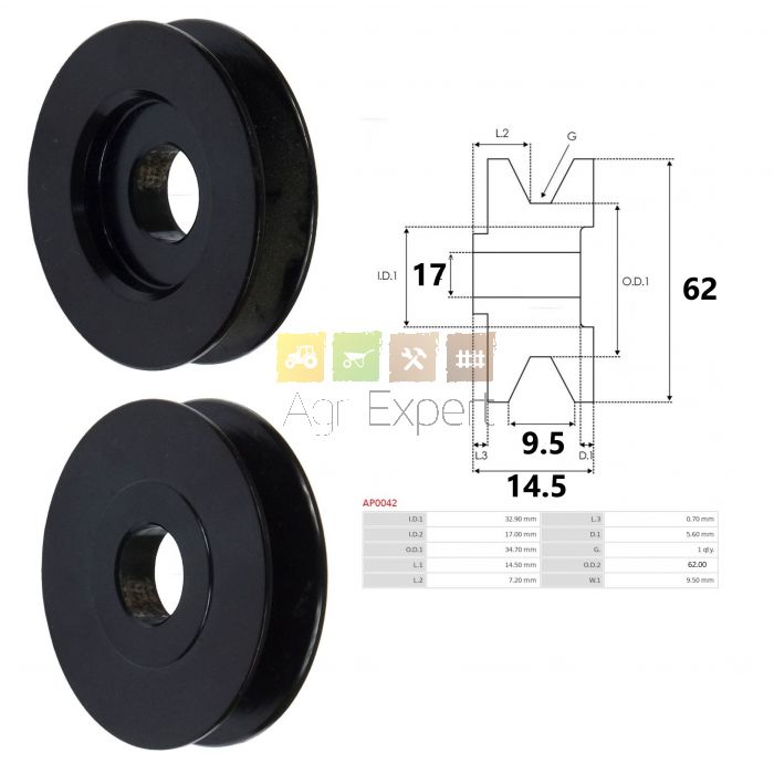 Poulie d'alternateur Ø 62 x 9,5 mm ISKRA, Bosch, Lucas pour courroie type SPZ, XPZ, Z