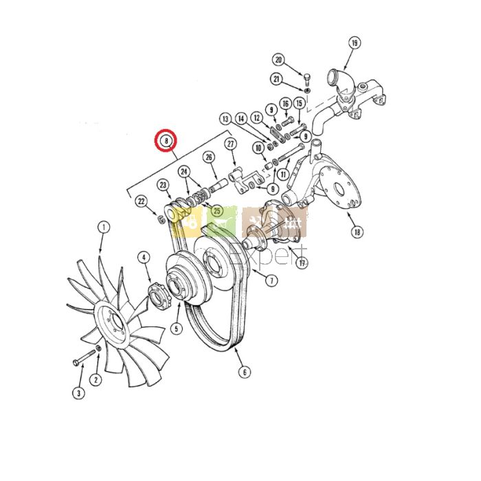Poulie tendeur de courroie tracteur Case IH 743, 956 XL, 1056 XL, 1255 XL, 1455 XL (avec compresseur de climatisation seulement )