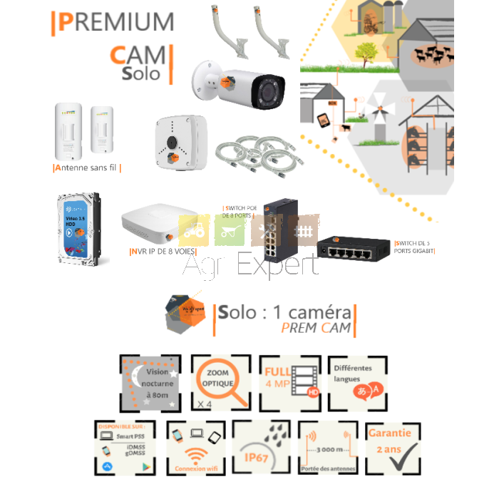 | PREMIUM' Cam Solo | : dispositif complet et polyvalent de vidéosurveillance : 1 Prem' Cam Visio Expert