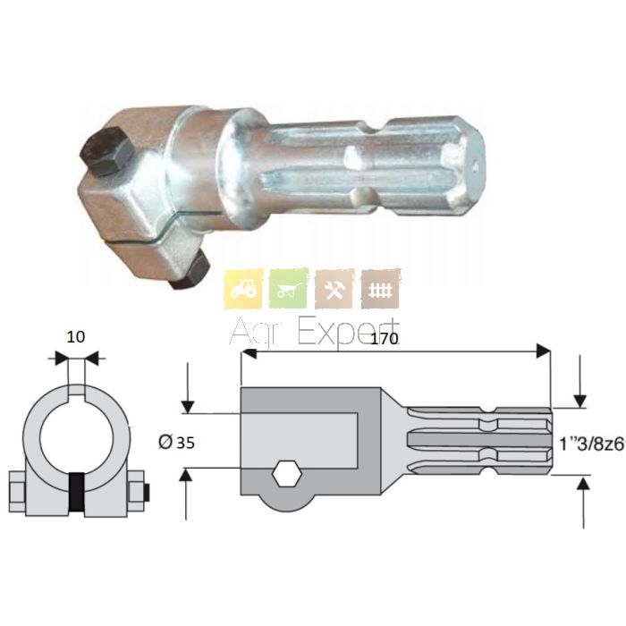 Prolongateur de transmission de prise de force alésage 35 claveté 10 avec verrou boulon tangent mâle 1"3/8 6 Cannelures longueur 170 mm, Puissance Maxi 40CV