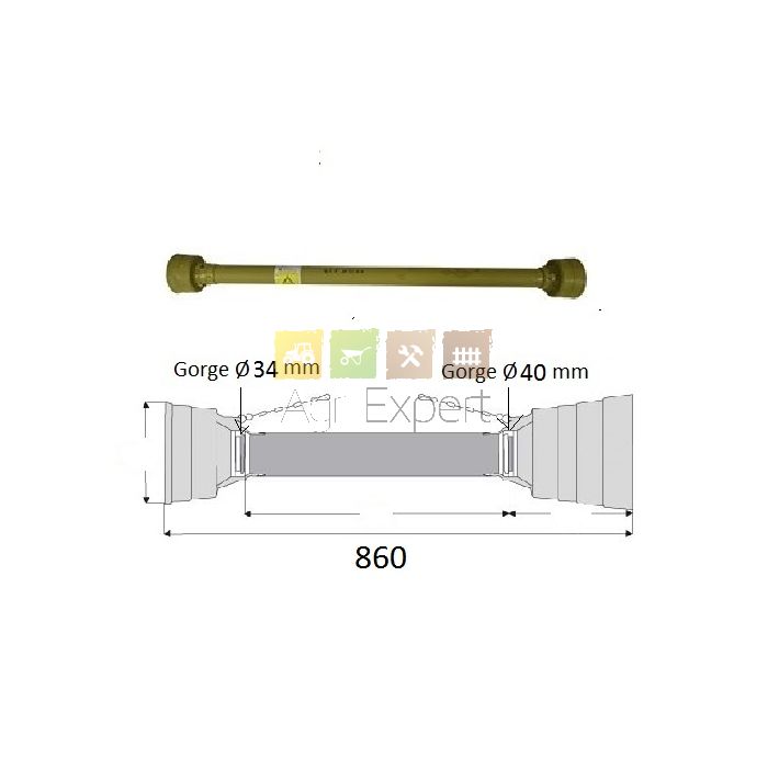 Protection de transmission à cardan universel longueur fermé 860mm recoupable avec bague et chaine