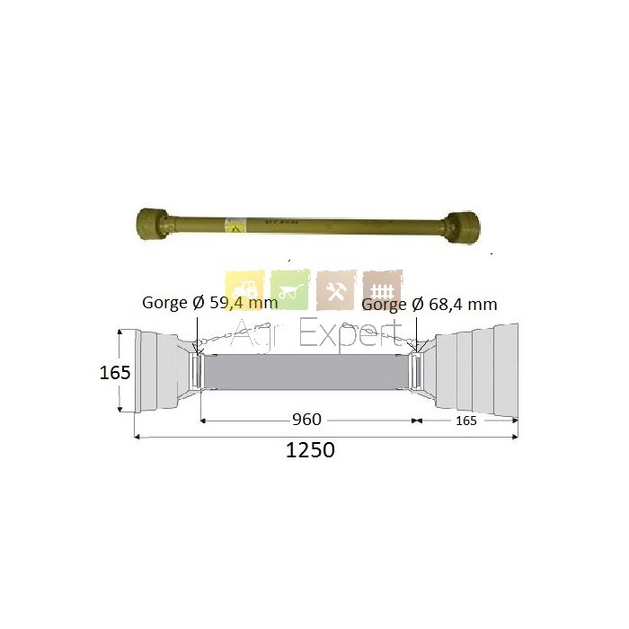 Protection de transmission à cardan universel longueur fermé 1200mm recoupable avec bague et chaine