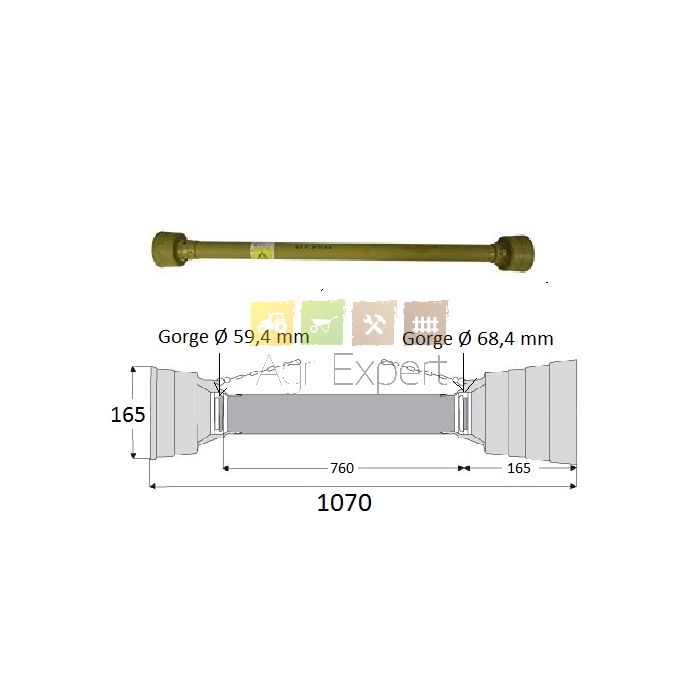 Protection de transmission à cardan universel longueur fermé 1000mm recoupable avec bague et chaine
