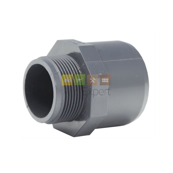 Raccord PVC filetage mâle 1/1/2" pour tuyau 63 mm à collée, pour tuyau PVC pression 16 Bar, piscines enterrées, systèmes d'irrigation, ecoulement, alimentation d'eau...