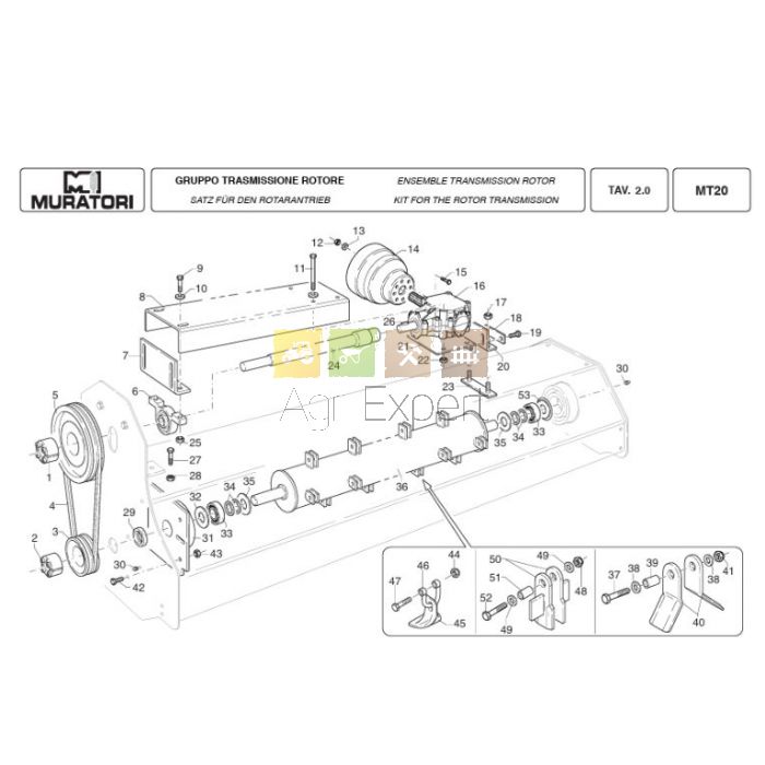 Rallonge pour rotor de transmission broyeur Muratori MT20/30.