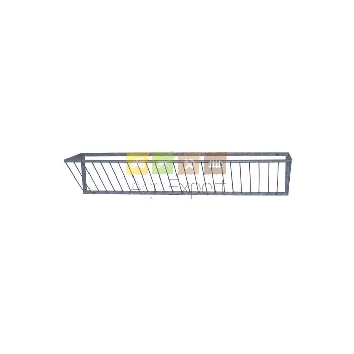 Râtelier à foin en métal galvanisé pour 5 veaux. Fixation murale. Dim : 194 x 40 x 48 mm.