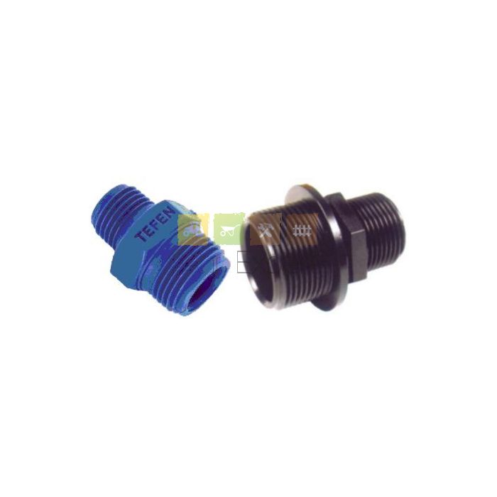Réduction 1 mâle / 1/2 mâle en polypropylène noir. Dimensions : F = 2, M = 1 1/2, H = 22 mm, H1 = 18 mm, L = 52 mm, D = 45 mm, D1 = 32 mm. Vendu par 25 unités.