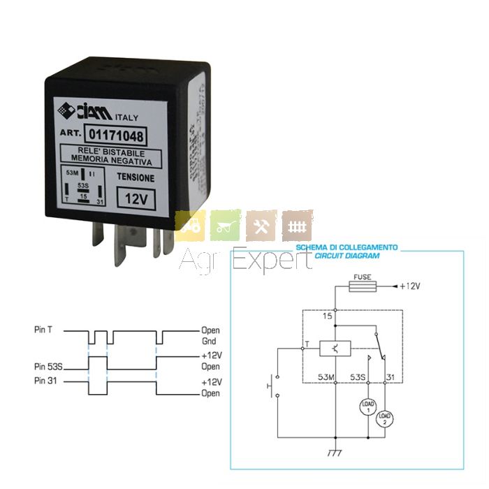 Relais bistable 12V 5A Maxi COBO, Applications Agriculture, autobus, manutention, PL, VUL, travaux publics, véhicules de loisirs.