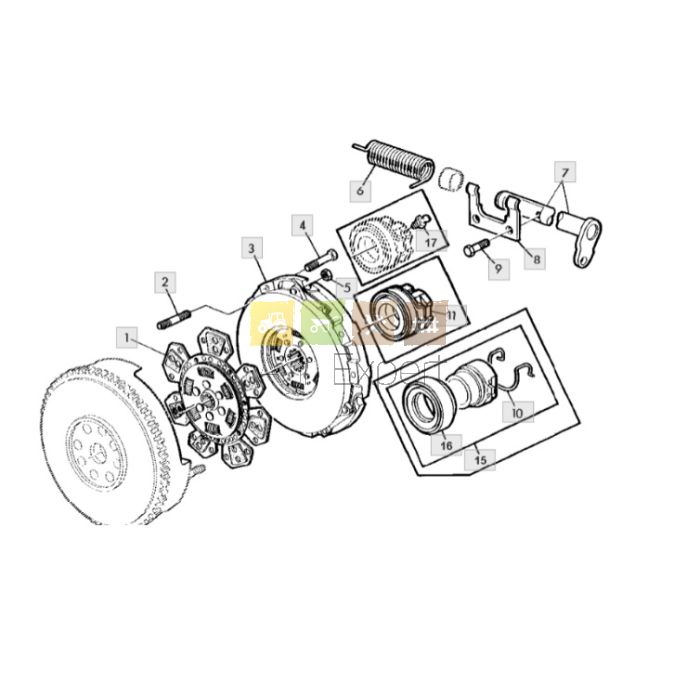 Ressort de butée d'embrayage John-Deere 820, 920, 1020, 1120, 2020, 2120, 830, 930, 1030, 1130, 1530, 1630, 1830, 2030, 2130, 3030, 3130, 840, 940, 1040, 1140, 1140F, 1640, 1640F, 1840, 1840F, 2040, 2040F, 2040S, 2140, 2240, 2440, 2640, 2840, 2940, 3040, 3140, 3340, 2150, 3040, 3140, 1350, 1550, 1750, 1750V, 1850, 1850N, 1850V, 1950, 1950N, 2250, 2450, 2650, 2650N, 2850, 3050, 3150, 3350
