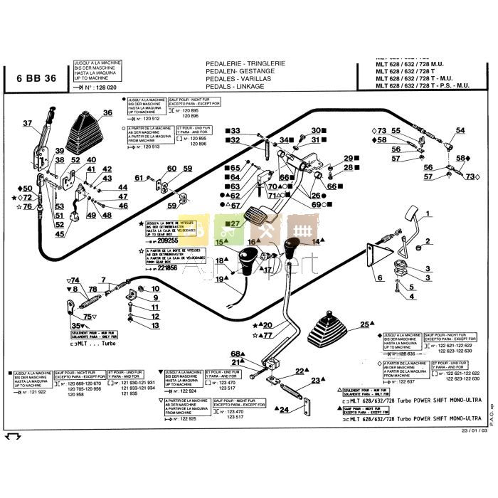Ressort accélerateur a pied pour chargeur télescopique Manitou MLT 628, MLT 632, MLT 728