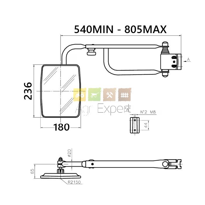 Rétroviseur bras télescopique pour tracteur New-Holland L, TL70A, TL80A, TL90A, TL100A, T5030, T5040, T5050, T5060, T5070, Case IH JXU 75, 85, 95, 105, 1070, 1080, 1090, 1100
