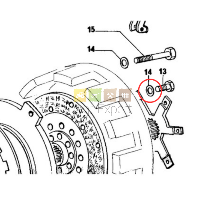 Rondelle frein pour vis fixation moyeu d'entrainement de prise de force tracteur Same