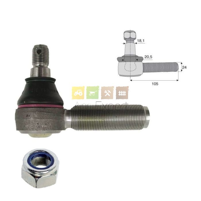 Rotule barre de direction tracteur Fiat Someca 650, 650DT, 750DT, 850, 1000, 1300, 880, 980, 1280, 1380, 1580, 1880 OEM: 5115341, 62751001, 44078662, 5106716, 62750017