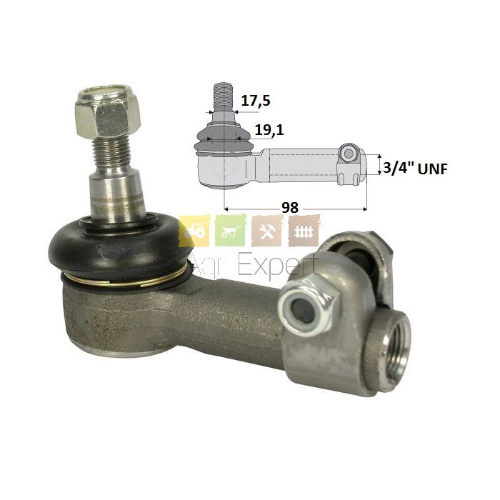 Rotule de barre de direction, droite Rotule cône 17,5-19,5, filetage femelle Ø3/4" UNF longueur 98 mm