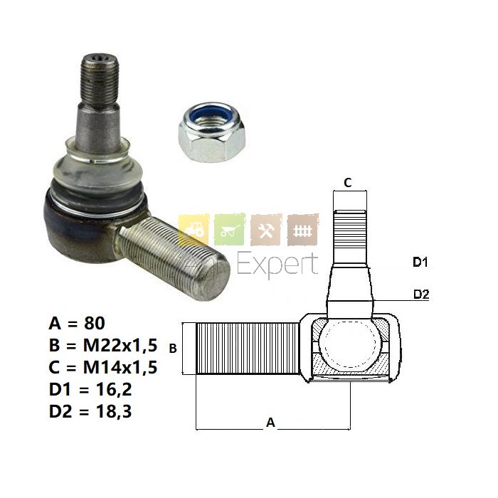 Rotule de barre de direction tracteur Case IH JX, New-Holland TD, Fiat SOM 40, 45, 50, 55, 511, 615, 715, 800, 570, 580, 650, 666, 670, 680, 750, 780, 850, 880, 980