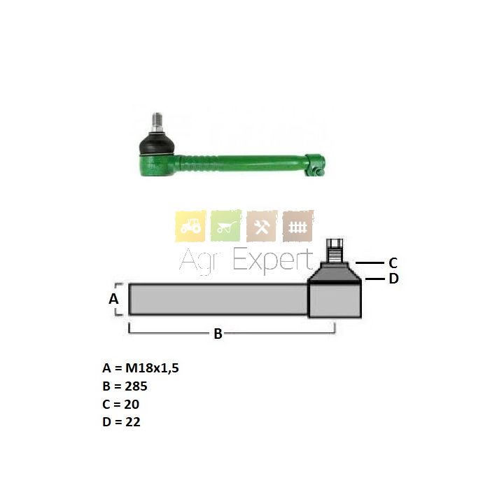 Rotule de barre de direction tracteur John-Deere 1550, 1640, 1750, 1840, 1850, 1950, 2040, 2140, 2250, 2450, 2650, 2850 avec Pont ZF