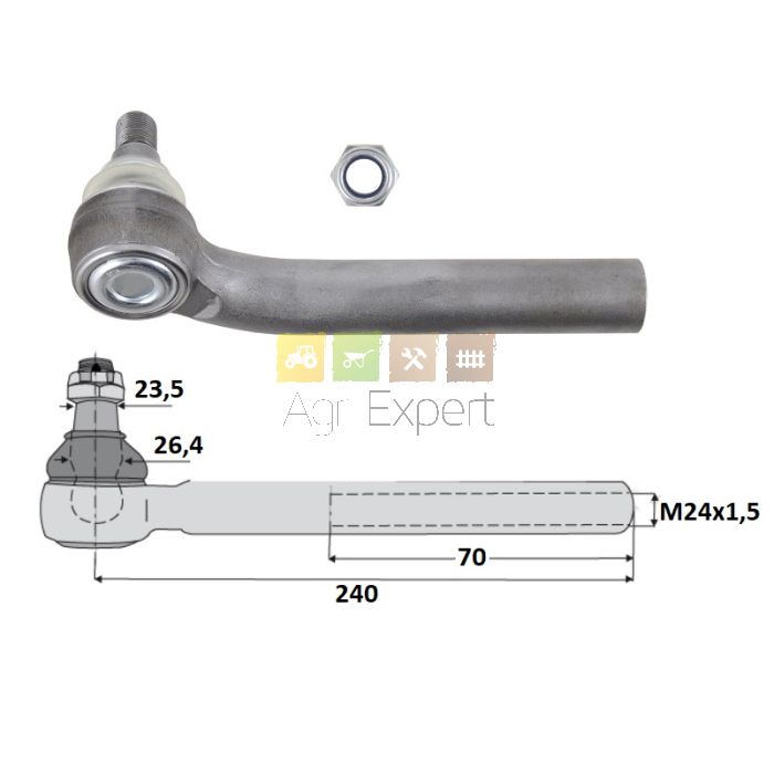 Rotule de direction coudée à droite tractopelle CASE 580K 4WD