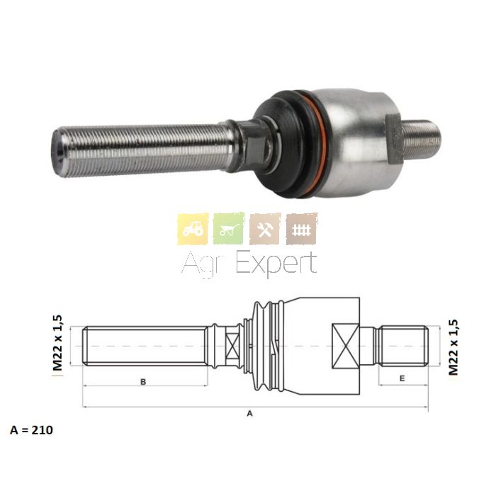 Rotule axial longueur 210 filetage court M22 x 1,5 - filetage long M22 x 1,5