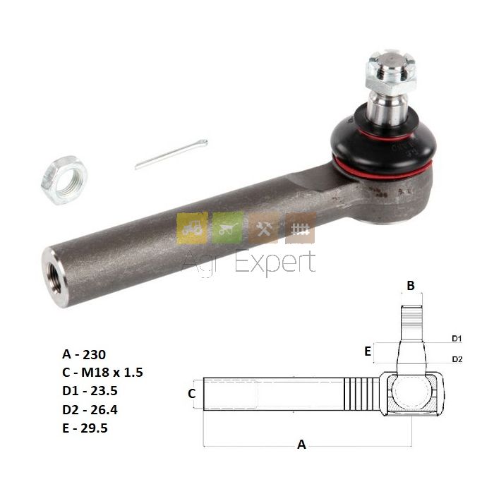 Rotule de direction Massey-Ferguson 265, 275, 285, 290, 365, 375, 390, 396, 4225, 4235, 4240, 4245, 4255, 4260, 4265, 4270, 4335, 6120, 6130, 6140, 6235, 6245, 6255