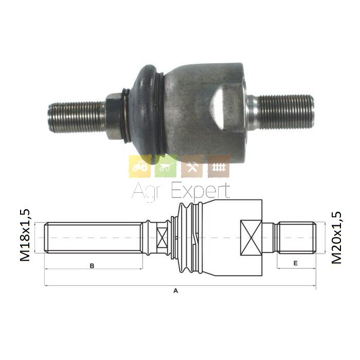 Rotule axial M18X1.5 - M20X1.5, longeur 160 mm