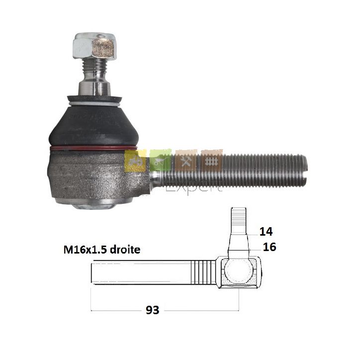 Rotule cône 14/16,5 filetage M16x1.5mm pas à droite, L93 mm