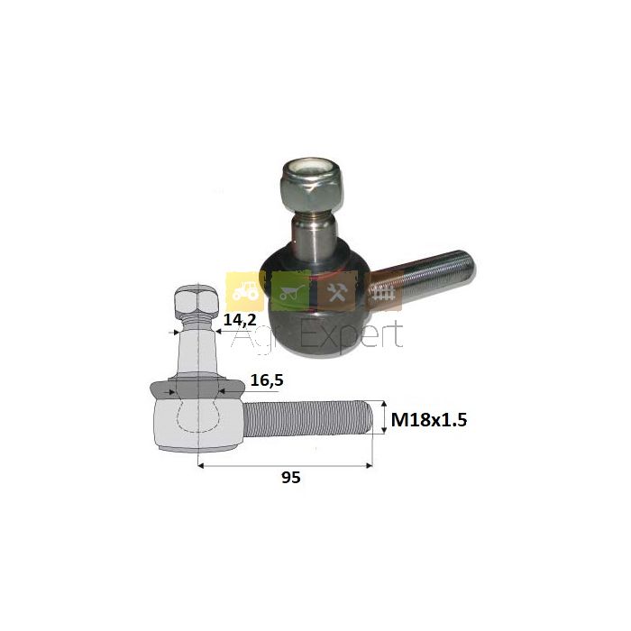 Rotule de direction cône 14,2/16,5 longueur 95 mm - filetage M18x1.5 tracteur Renault R50, R 60, R 70, R 460