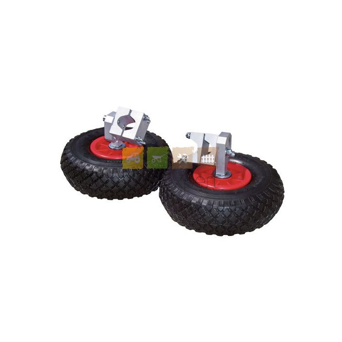 Kit composé de 2 roues à installer sur toute brouette de jardin ou de chantier du commerce, même sur des brouettes anciennes et sur des brouettes déjà utilisées. Les roues d'appui supplémentaires sur les montants arrières permettent de pousser la brouette sans efforts même en cas de lourdes charges. Cela soulage le dos et les bras et facilite le travail quotidien. Idéal pour le jardin, l'agriculture et le bâtiment. Le kit se monte très facilement grâce aux colliers de fixation fournis, ainsi il n'y a pas de perçage nécessaire. ATTENTION : Le kit de montage et les pneus ne sont pas autorisés pour la route.