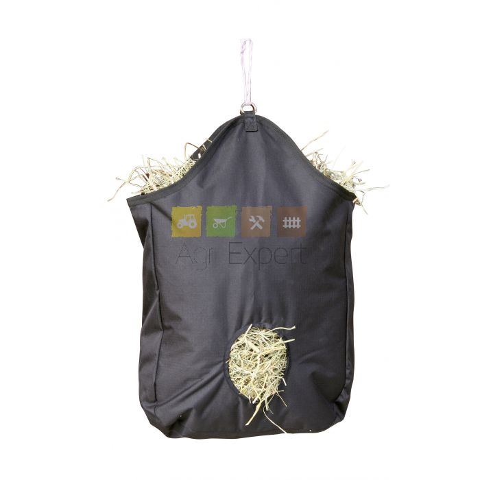 Sac à fourrage 100% nylon avec 2 crochets de suspension. Votre accessoire idéal lors des transports et des concours. Dimensions : 65 x 50 cm.
