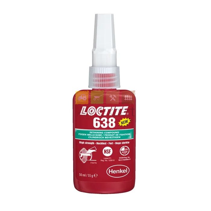 Scelle roulement fort LOCTITE 638 - 50ml, haute résistance aux charges dynamiques axiales et radiales, carters de transmission et palans manuels à chaîne