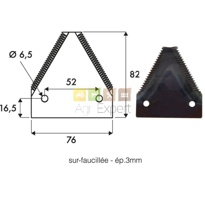 Section sur-faucillée, épaisseur 3 mm moissonneuse batteuse Massey Ferguson Power Flow, Case IH 1030, Dronningborg
