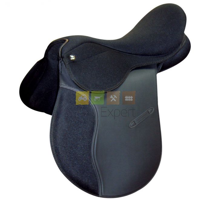Selle synthétique PFIFF Basicline 101576 noire équipée d'étriers et d'étrivières 16", 17"