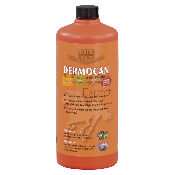 Shampooing qui nettoie en profondeur la robe des chevaux. DERMOCAN
