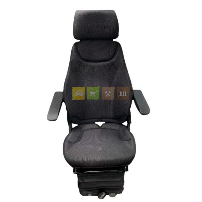 Siège conçu pour les engins de chantier, doté d'une suspension mécanique et d’un rembourrage en tissu avec conception sous vide pour un confort optimal.